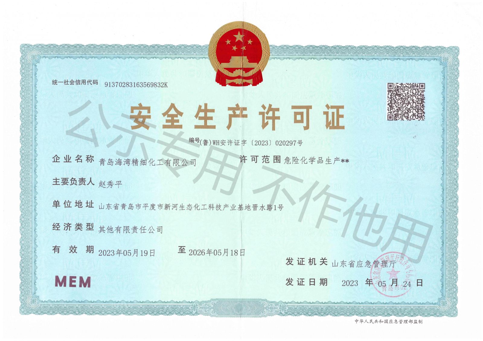公司營業(yè)執(zhí)照、安全生產(chǎn)許可證公示