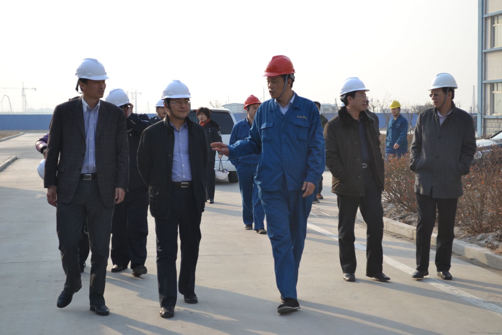 2014年1月2日,平度市副市長姜文慎一行到平度新區(qū)視察。海灣集團副總經(jīng)理、雙桃董事長張英民陪同視察并介紹了公司搬遷工作情況。