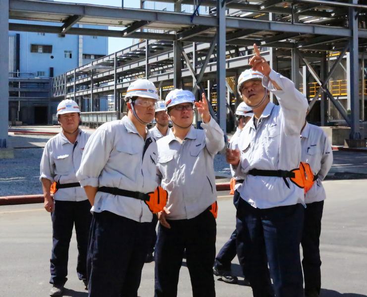 趙秀平總經理首先向李明董事長匯報了901、902、903等裝置節(jié)假日期間的生產運行情況,并就908南北裂化、甲酯試車、熱電廠一期并網發(fā)電等李明董事長特別關心的工作進行了重點匯報。聽取匯報后,李明董事長對公司近期的試生產工作予以肯定,要求公司領導班子抓好現(xiàn)場安全管理,做好污水處理和危廢處置等環(huán)保工作,抓住新的環(huán)保形式帶來的化工中間體供不應求的市場形式,逐步提升產能實現(xiàn)穩(wěn)產達產,全面完成集團下達的目標任務。張英民(集團)副總經理針對集團重點關注的中控指標和雙基管理提出工作要求。他要求公司加強工藝安全培訓、生產運行指標、設備完好率、公用工程穩(wěn)定運行等基礎管理工作,對易燃易爆區(qū)域及受限空間作業(yè)進行升級管理,落實安全措施,實現(xiàn)本質安全。匯報結束后,李明董事長一行在趙秀平總經理等公司領導的陪同下到908、901、904等生產現(xiàn)場實地檢查,并親切慰問一線生產員工。