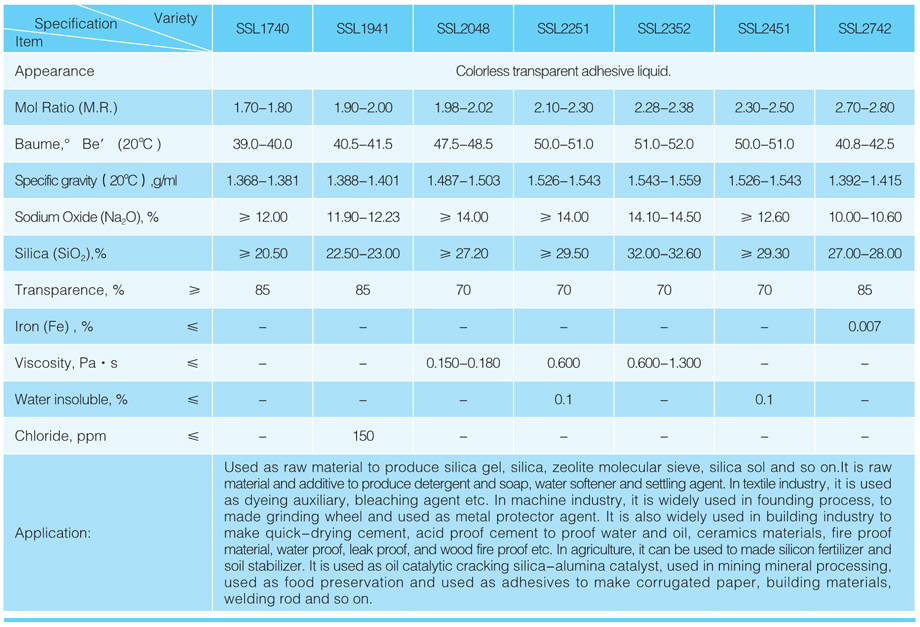 Standard compliance: GB/T 4209-2008"IndustrialSodium Silicate", Enterprise Standard Q-PG/ll-02-06-J"Industrial Sodium Silicate".