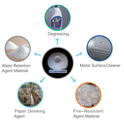 Properties: It is easily dissolved in water and difficult dissolvedin ethanol and acid. The solution is slightly alkaline. It is easily to absorb moisture when it is stocked in the open air. It has characters of decontamination, decentralization, wetness, penetrability, and PH value buffer capacity.