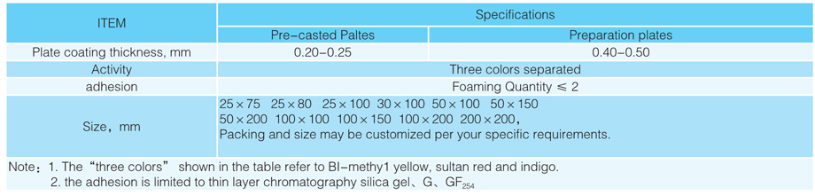Characteristics:Available in forms of thin layer chromatography silica gel plate, high efficient thin layer chromatography silica gel plate. They are formed of fine quality thin layer chromaotography silica gel blended with proper adhesive and applied on the glass plates. It has specified pore volume, specific surface area and pore distribution.
